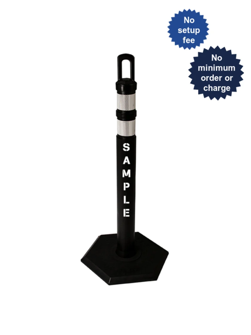 42" Black JBC Arch Top Tube w/ Two 3" Reflective Collars & 8lbs Base w/ Single Color Graphic
