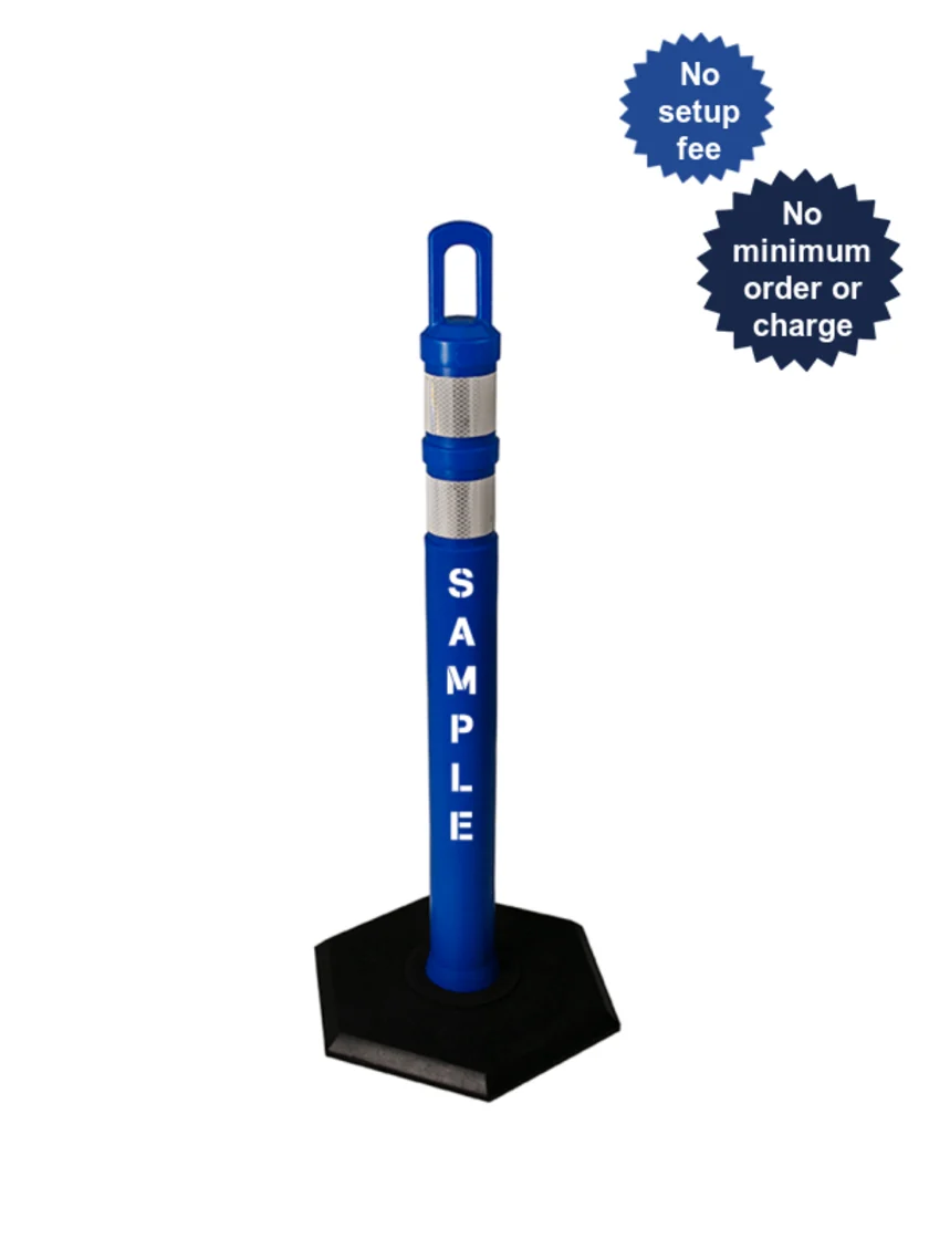 42" Blue JBC Arch Top Tube w/ Two 3" Reflective Collars & 8lbs Base w/ Single Color Graphic