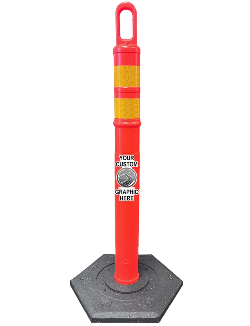 42" Orange TrafFix Looper Tube w/ Two 3" Yellow Reflective Collars & 8 lbs Base w/ Single Color Graphic