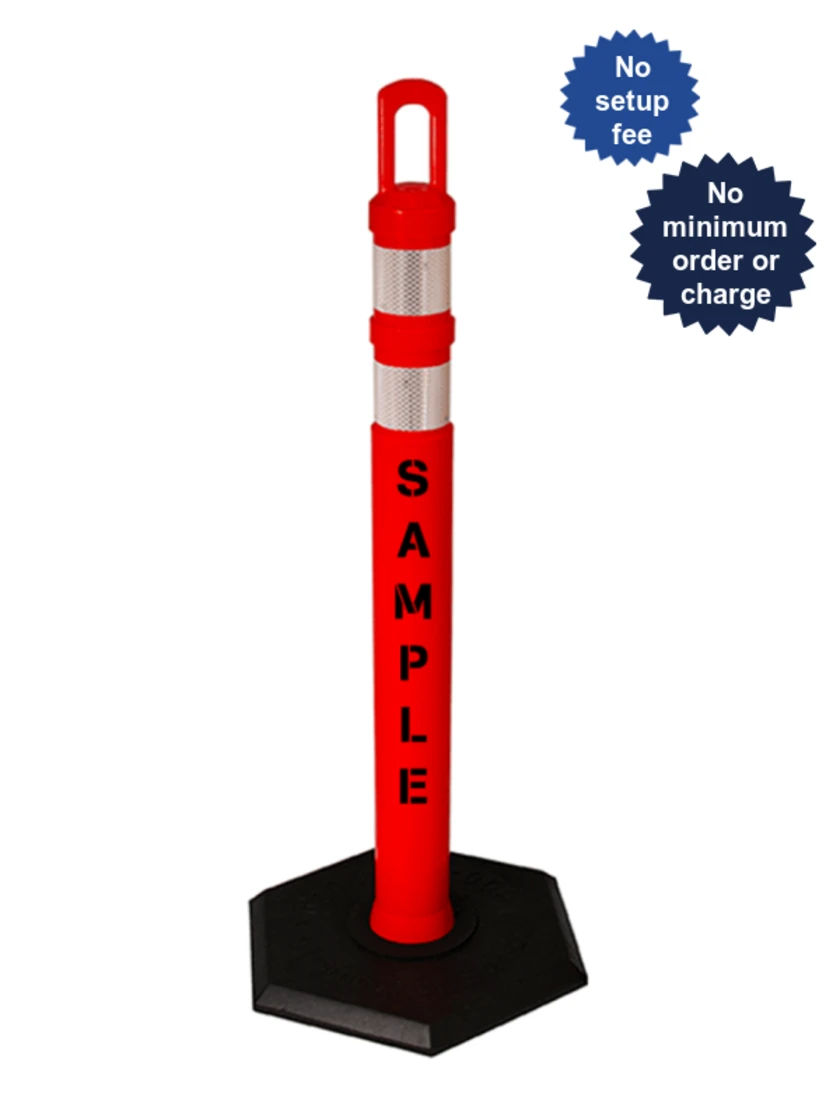 42" Orange JBC Arch Top Tube w/ Two 3" Reflective Collars & 8lbs Base w/ Full Color Graphic on Both Sides