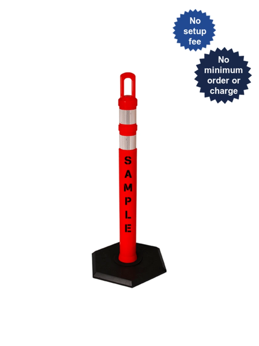 42" Red JBC Arch Top Tube w/ Two 3" Reflective Collars & 8lbs Base w/ Single Color Graphic