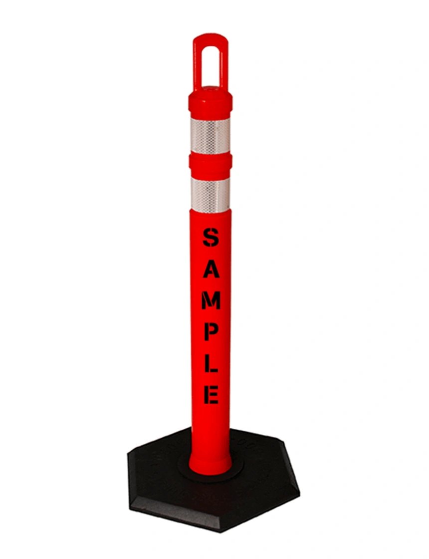 42" Orange JBC Arch Top Tube w/ Two 3" Reflective Collars & 8lbs Base w/ Full Color Graphic on Both Sides