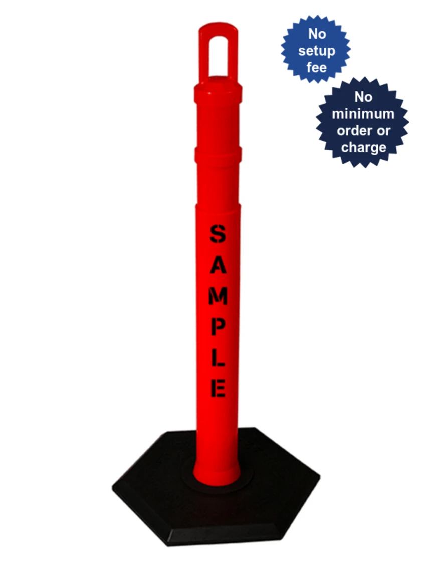 42" Red JBC Arch Top Tube w/ Two 3" Reflective Collars & 8lbs Base w/ Single Color Graphic on Both Sides