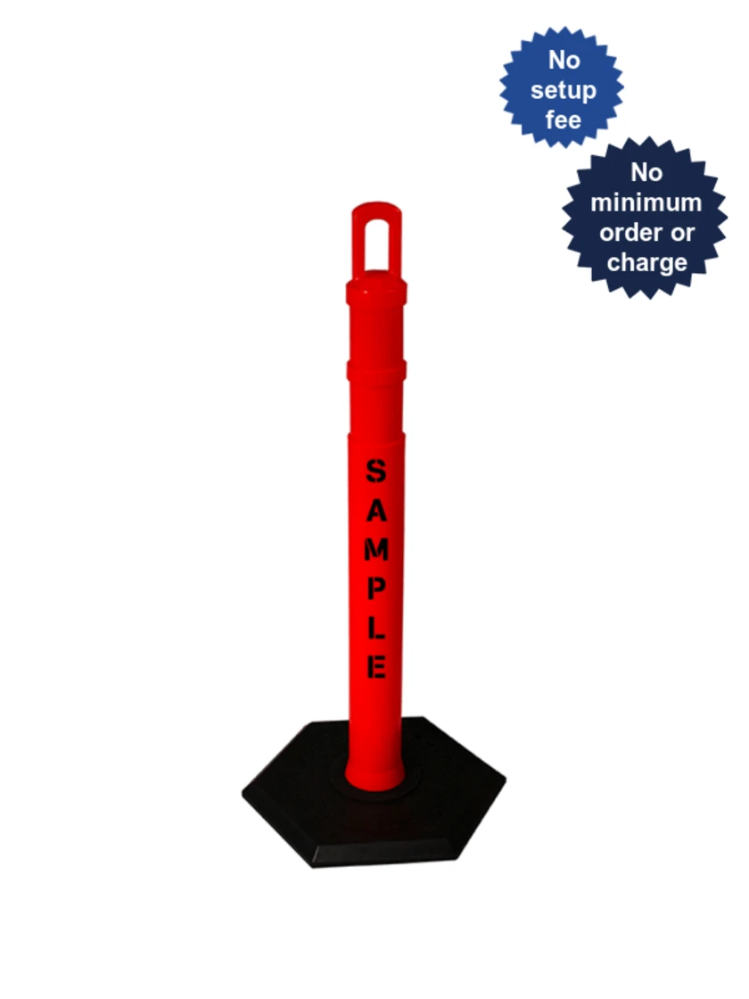 42" Orange JBC Arch Top Tube, Two 3" Reflective Collars, 8lbs Base & Double Sided Lettering