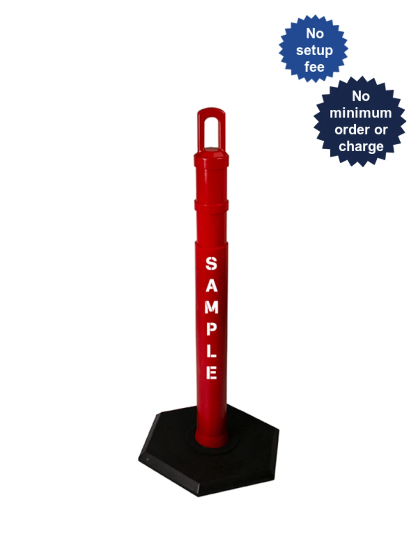 42" Red JBC Arch Top Tube w/ Two 3" Reflective Collars & 18lbs Base w/ Single Color Graphic