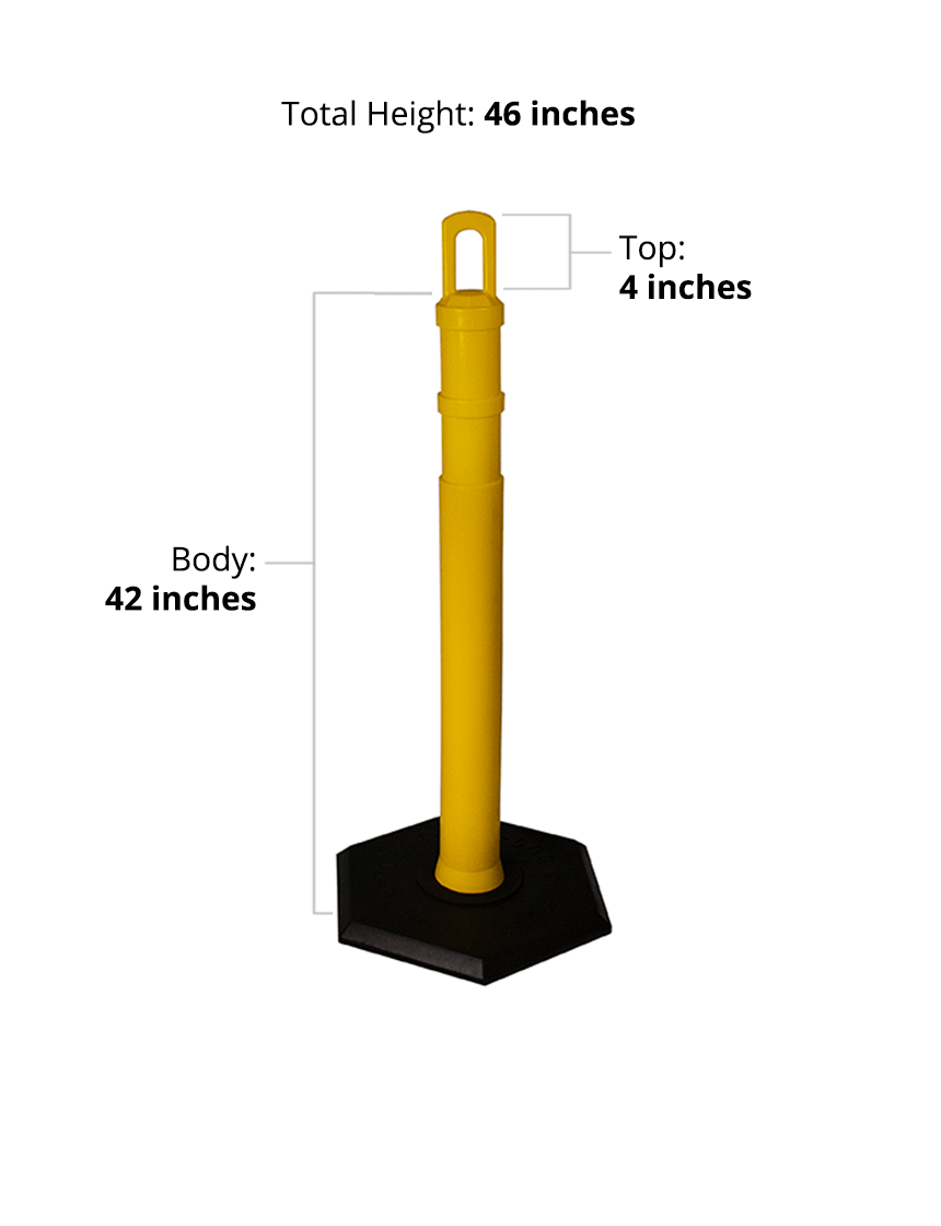 42" Yellow JBC Arch Top Tube, Two 3" Reflective Collars, 8lbs Base & Double Sided Lettering