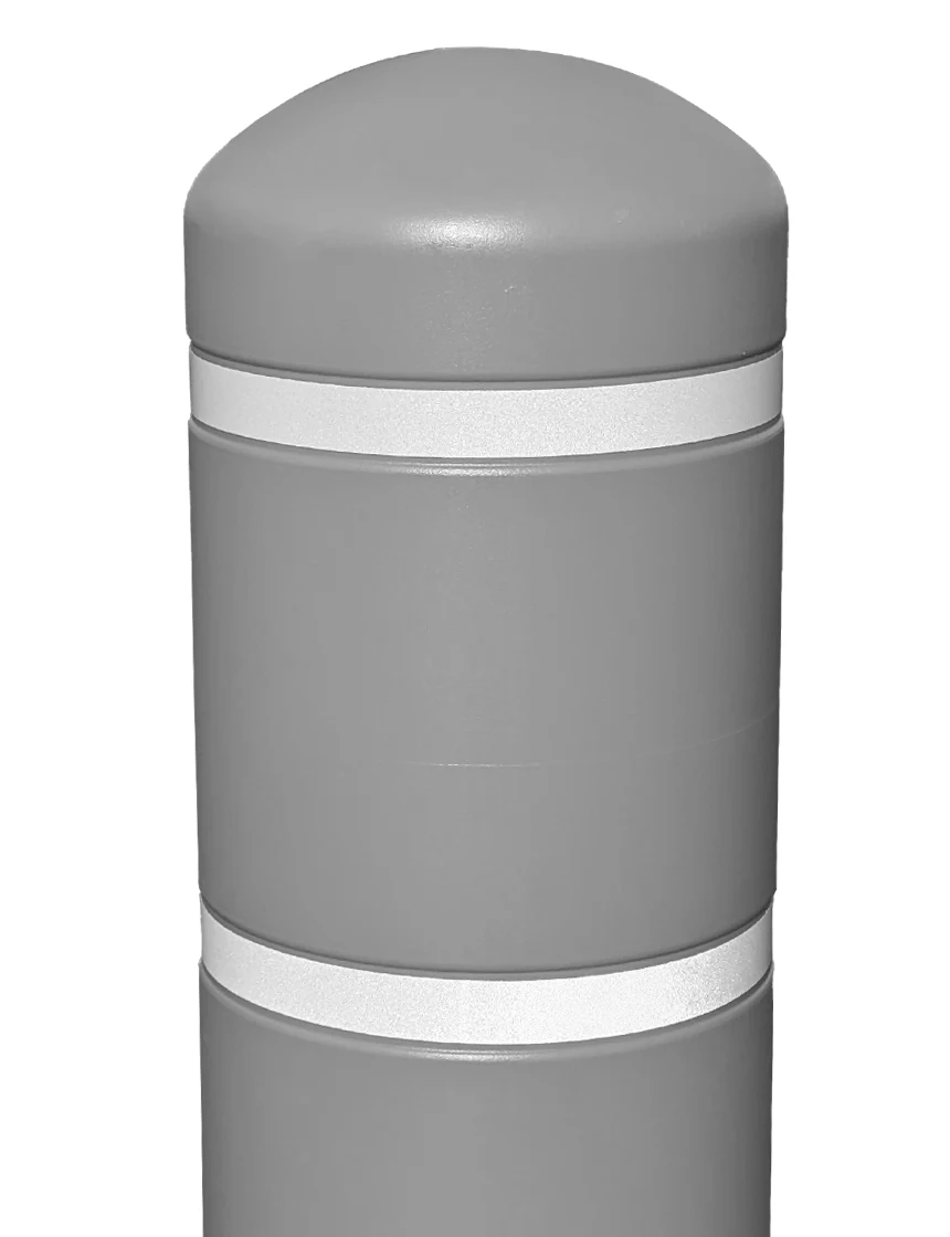 7" X 52" Gray Bollard Cover w/ Two White Reflective Stripes