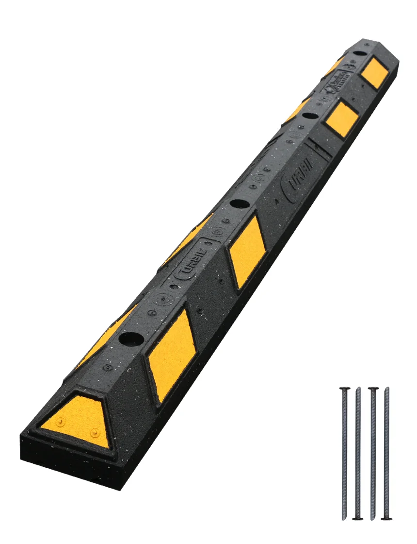 Our 6' rubber parking block from Clearline Manufacturing is made of 100% Recycled Rubber with Reflective Tape in 10 locations. Manufactured with Raised Edges to help protect the reflective tape. Build in Drainage Channels to allow water to flow rather than puddle against parking block. Countersunk holes for a clean installation and Easy 1-person installation. These Rubber Parking Blocks helps ensure vehicles stop at the proper location when parking – preventing damage to buildings, sidewalks, curbs, and any fragile landscapes. Clearline rubber parking curbs are manufactured in the USA from 100% compounded recycled rubber, which means it will not warp, chip, crack, crumble, or corrode.