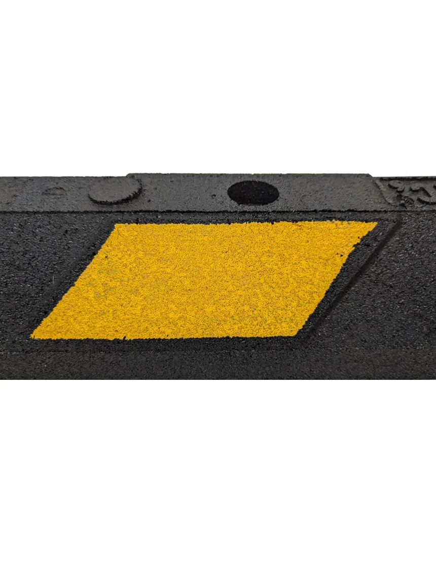 Pre-drilled holes make installation quick and secure, while the slight flexibility of the rubber allows the block to conform to uneven surfaces such as asphalt, gravel, or concrete. Each GUMA wheel stop is equipped with molded, highly reflective tape—available in yellow or white—that enhances night-time visibility and improves both driver guidance and pedestrian safety. These parking curbs are resistant to UV light, extreme weather conditions, road salt, oil, and gas, these parking blocks maintain their structural integrity and visibility despite constant exposure to harsh environments.