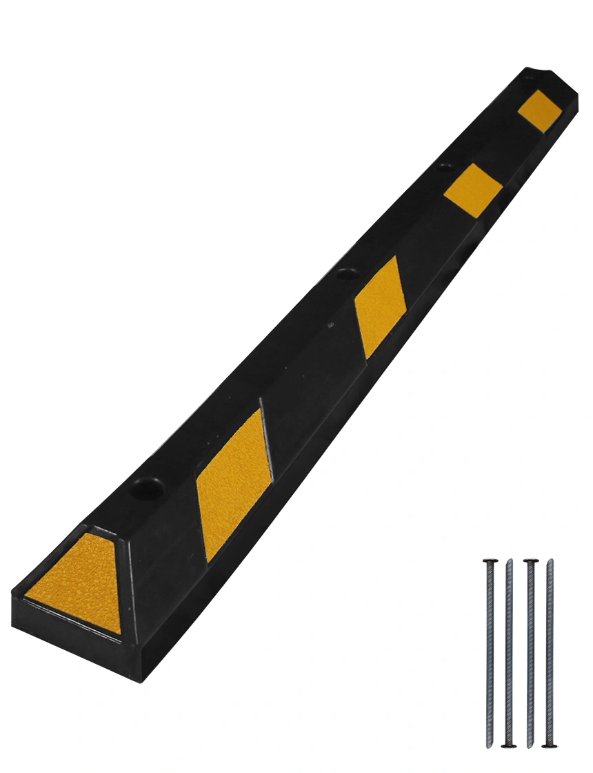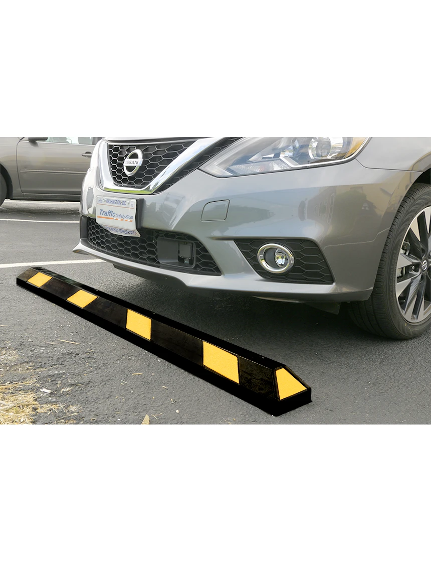 6' Black Rubber Parking Block with Yellow Reflective Panels