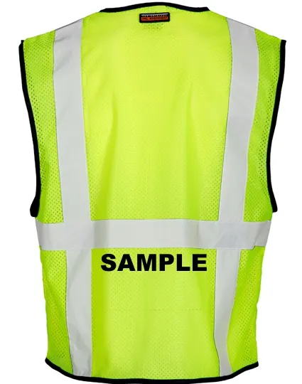 Super Economy Lime Mesh, Class 2 Vest w/6 Pockets & Zipper Front Closure, 2Xl-3Xl & Custom Black Lettering
