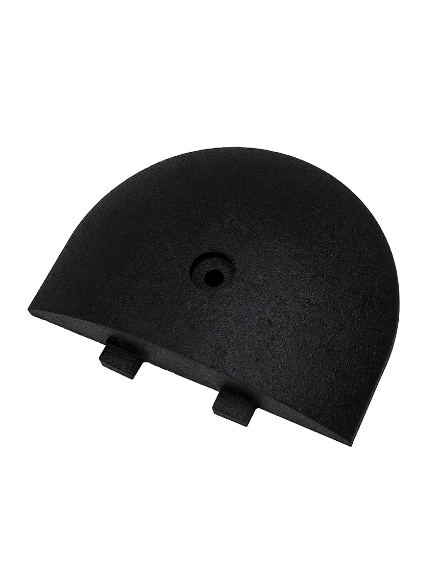 Extend the length of the recycled rubber speed bump by adding a 9-inch rounded cap to either/both end(s). Provides a finished, professional look while minimizing vehicle ware and tear. Each cap has a pre-sunk bolt hole for simple installation.