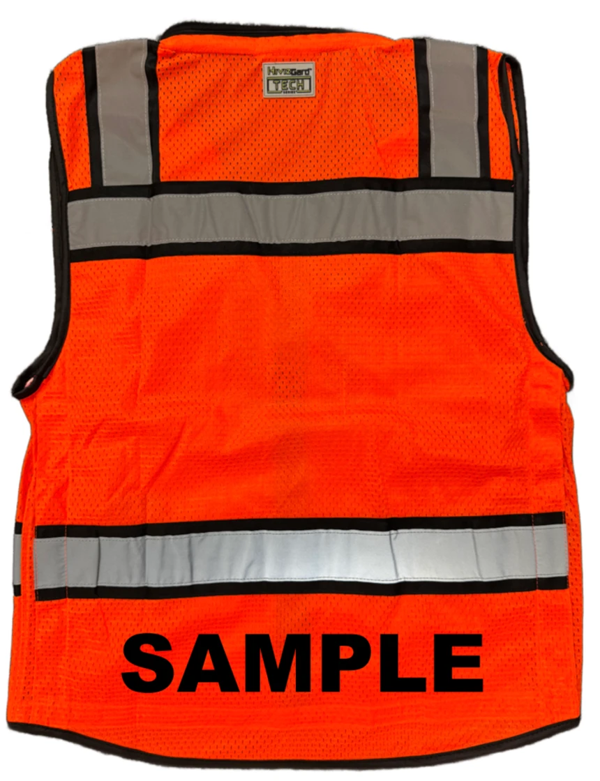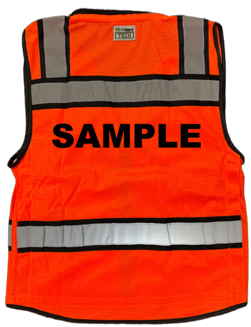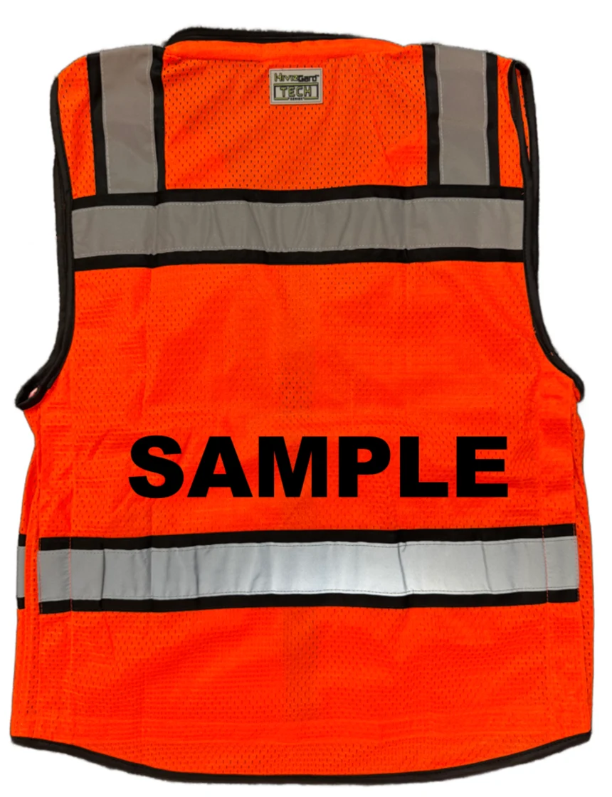 Liberty HiVizGard™ Tech Series Two Tone, All Mesh Class 2 Surveyor Vest, Orange, 3XL with Custom Black Lettering