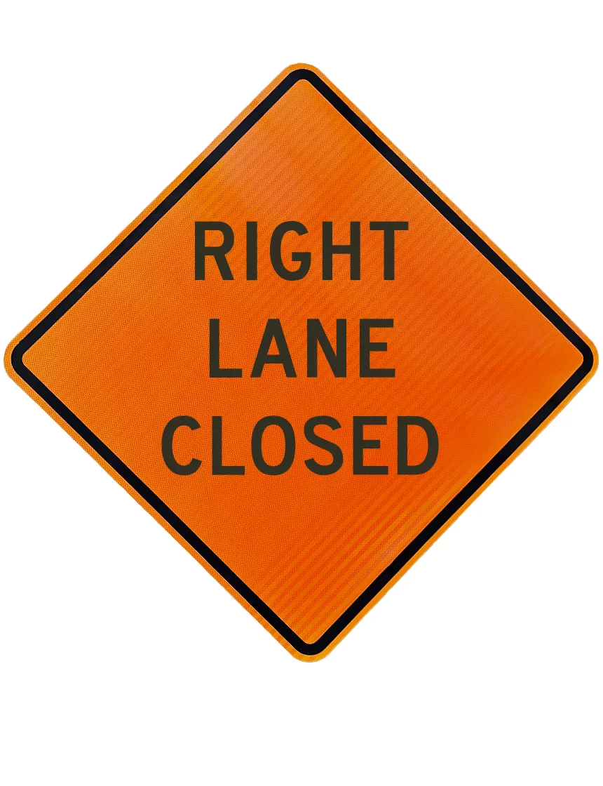 | RS-ALU-36-DG-ORG-RLCLSD | 36", Aluminum, Diamond Grade Reflective Sign, Right Lane Closed |