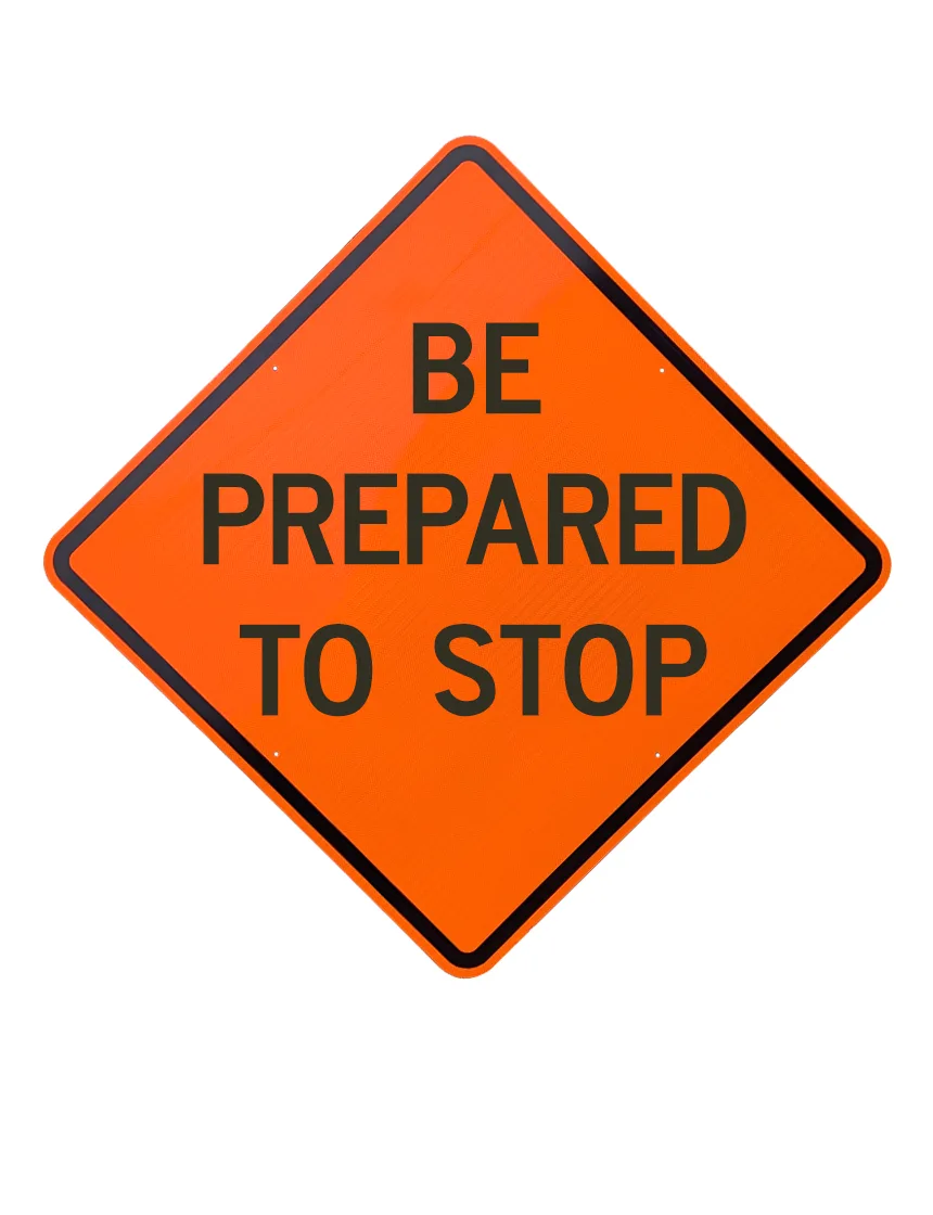 | RS-ALU-48-DG-ORG-BPTS | 48", Aluminum, Diamond Grade Reflective Sign, Be Prepared To Stop |