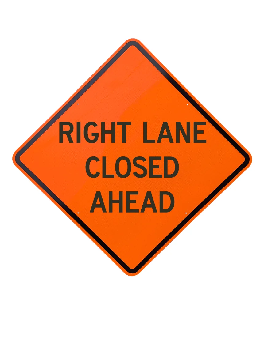 | RS-ALU-48-DG-ORG-RLCAHD | 48", Aluminum, Diamond Grade Reflective Sign, Right Lane Closed Ahead |