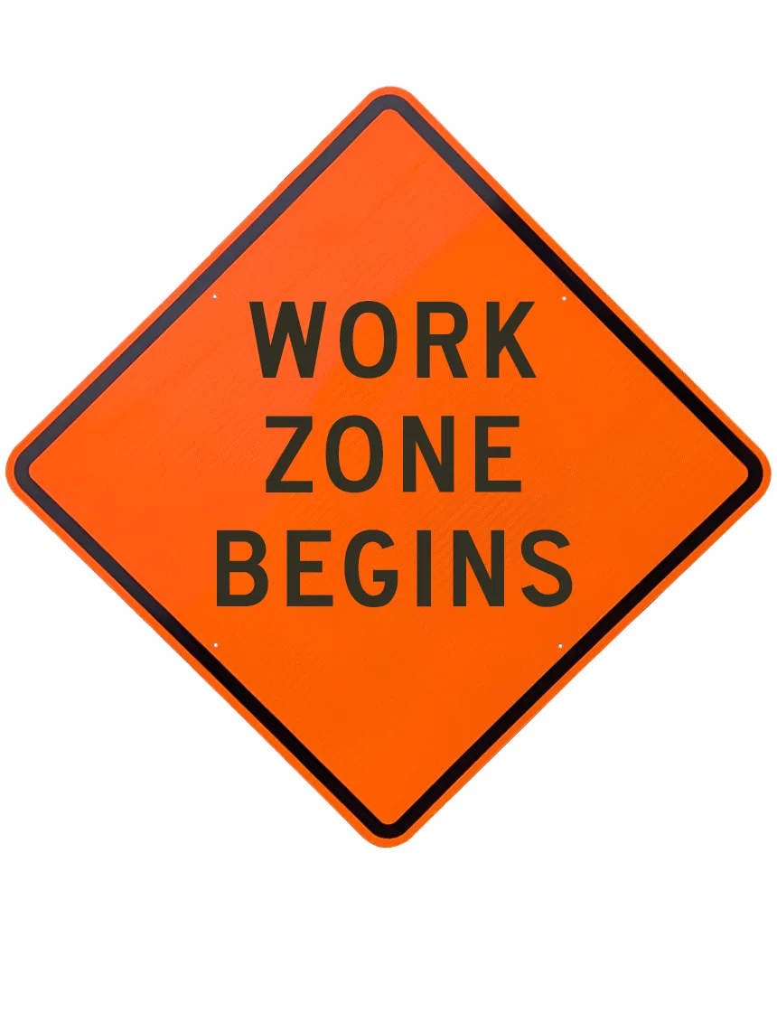 48", Aluminum, Diamond Grade Reflective Sign, Work Zone Begins