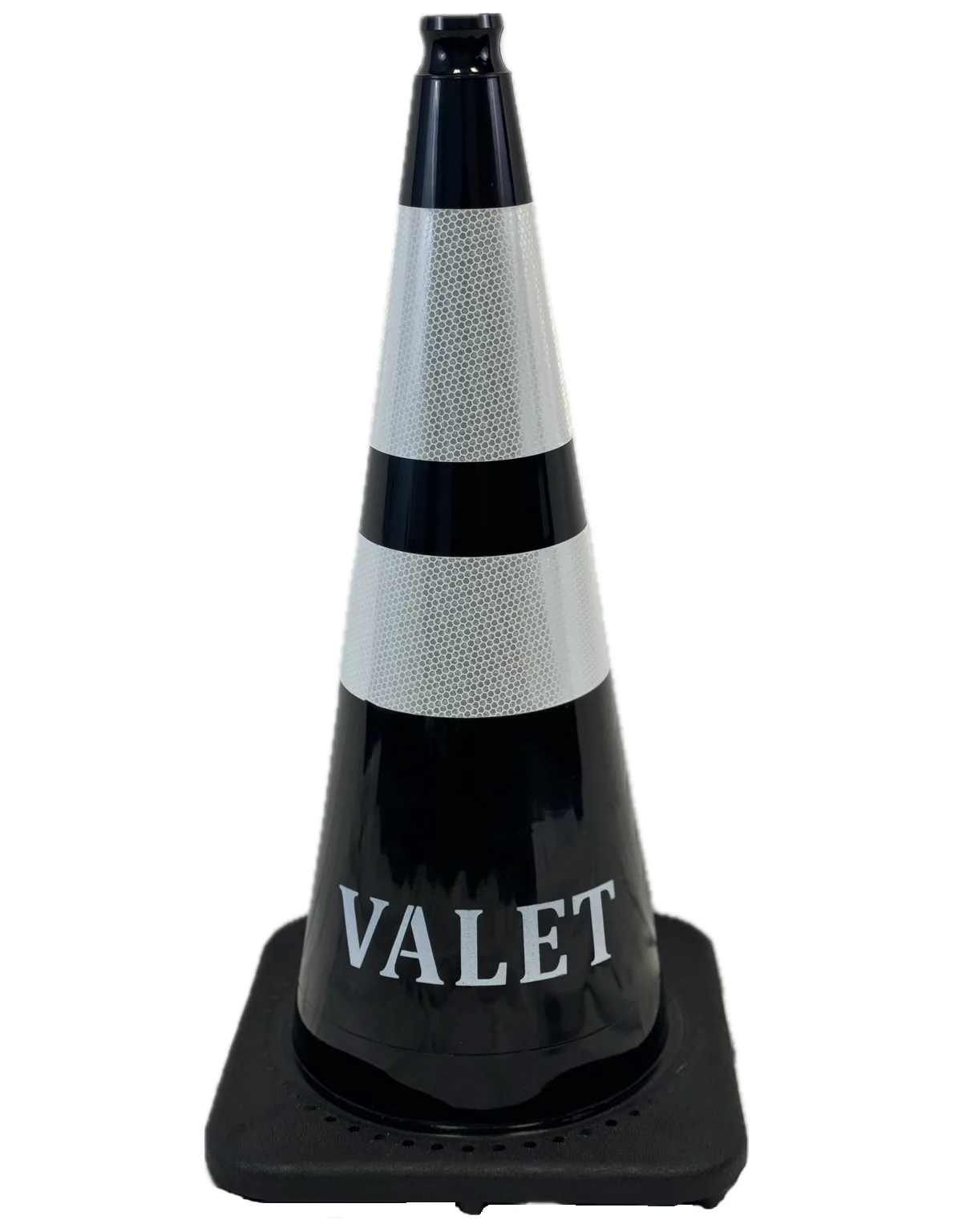 | CRBLK28RC64S-VALET | Black 28" 7 lbs JBC Cone w/ 6" & 4" Reflective Collars & Single-Sided 'Valet' Lettering |