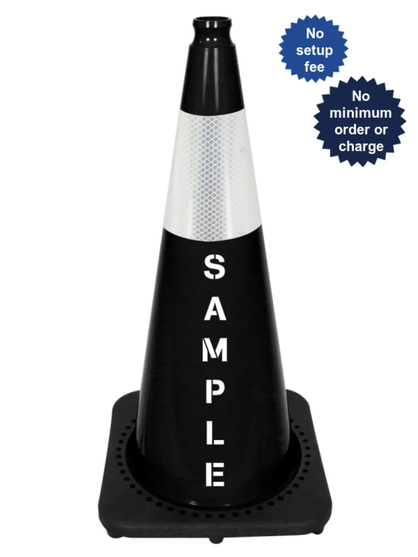 | CRBLK28SRC64S2X | Black 28" 7 lbs JBC Cone 6" & 4" Reflective Collars & Double Sided Lettering |