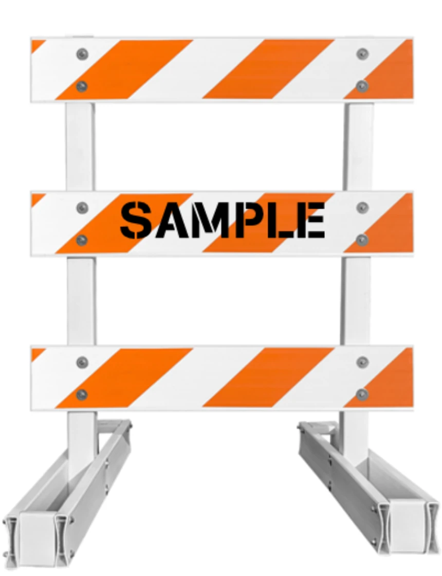 - Three (3) 4' x 8" x 1" Plastic Rails with Orange & White Reflective Sheeting (Choose Engineer Grade (EG) or High Intensity (HI) sheeting)