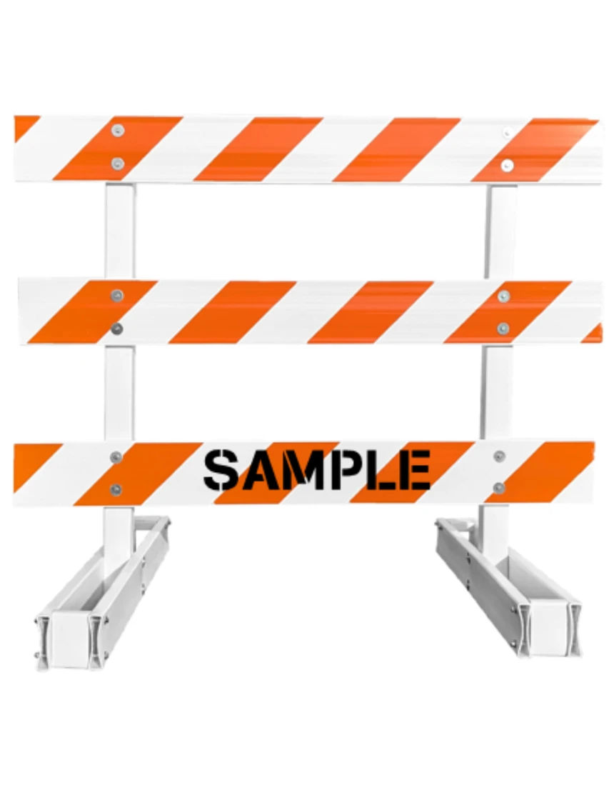 60" Tall MUTCD Type III Barricade -Break-Away System & Three 6' Plastic Boards w/EG Sheeting & Custom Lettering