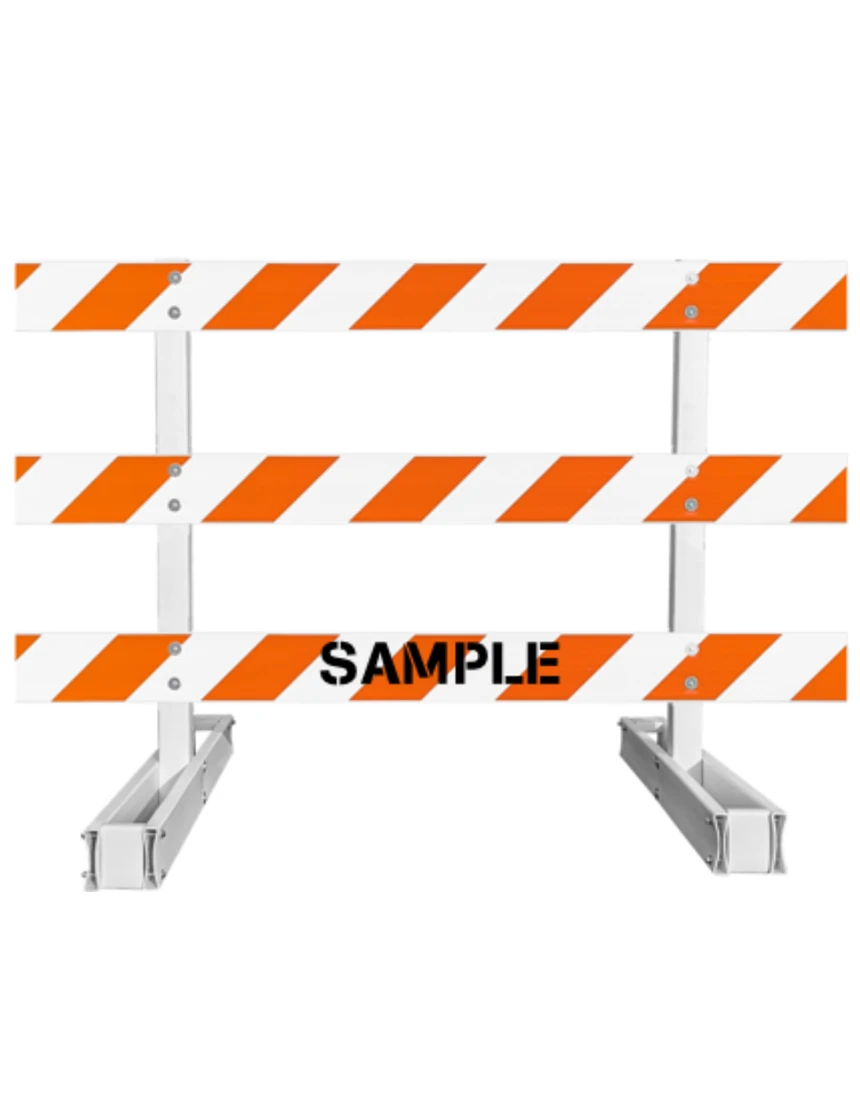 60" Tall MUTCD Type III Barricade -Break-Away System & Three 8' Plastic Boards w/EG Sheeting On Both Sides Of Rails & Custom Lettering