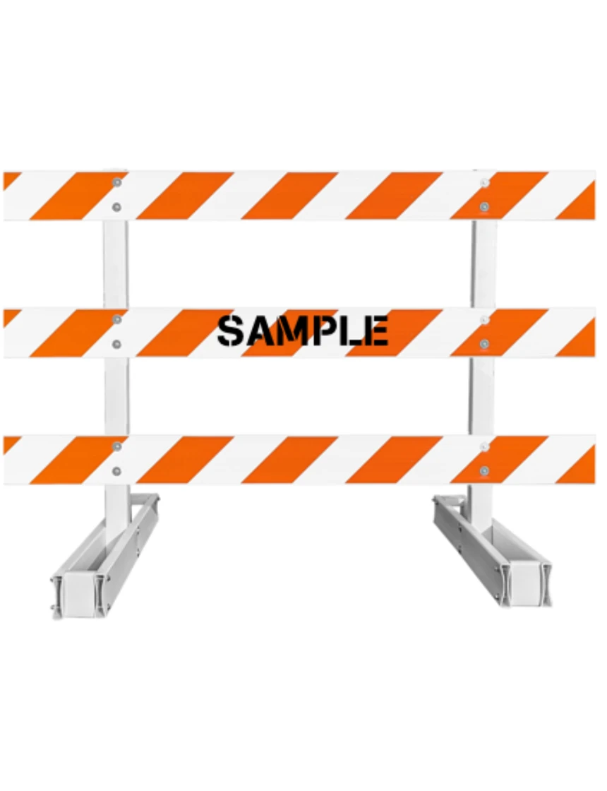 60" Tall MUTCD Type III Barricade -Break-Away System & Three 8' Plastic Boards w/HI Sheeting On Both Sides Of Rails & Custom Lettering