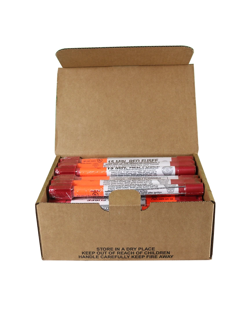 - Unique square caps keep flares from rolling when placed on the ground