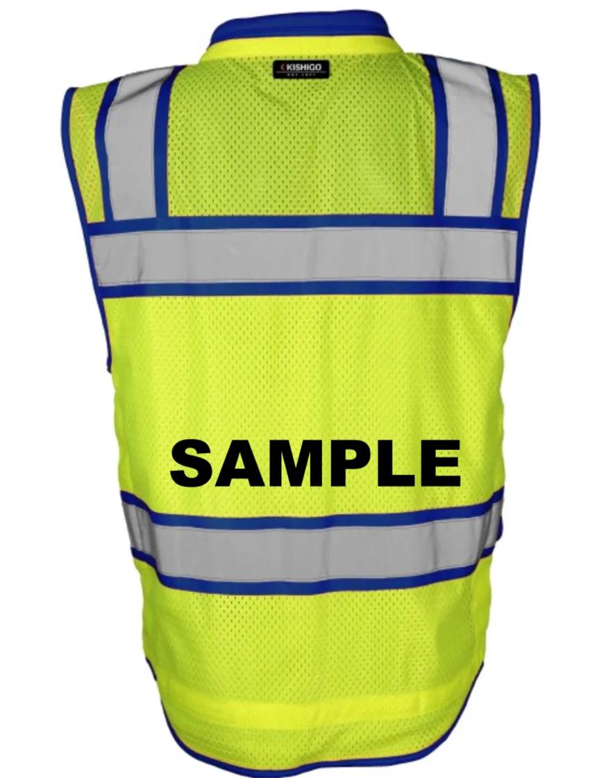 Kishigo Color Contrast High Performance Surveyors Lime & Blue, Class 2 Safety Vest, Medium with Custom Black Text
