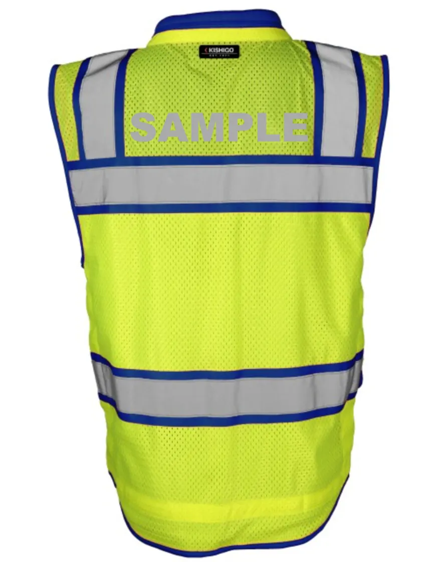 Kishigo Color Contrast High Performance Surveyors Lime & Blue, Class 2 Safety Vest, 3XL with Custom Reflective Text