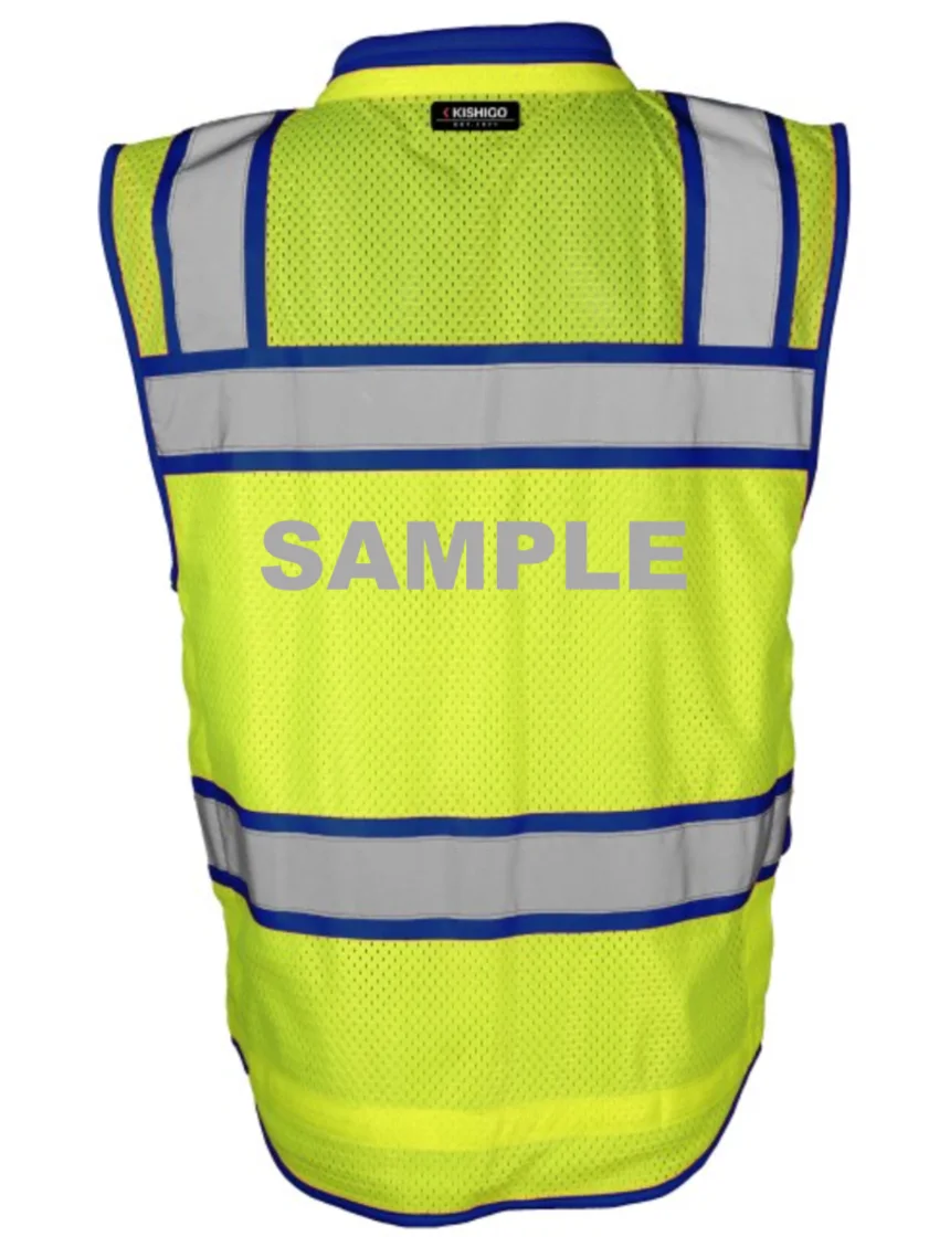 Kishigo Color Contrast High Performance Surveyors Lime & Blue, Class 2 Safety Vest, 5XL with Custom Reflective Text