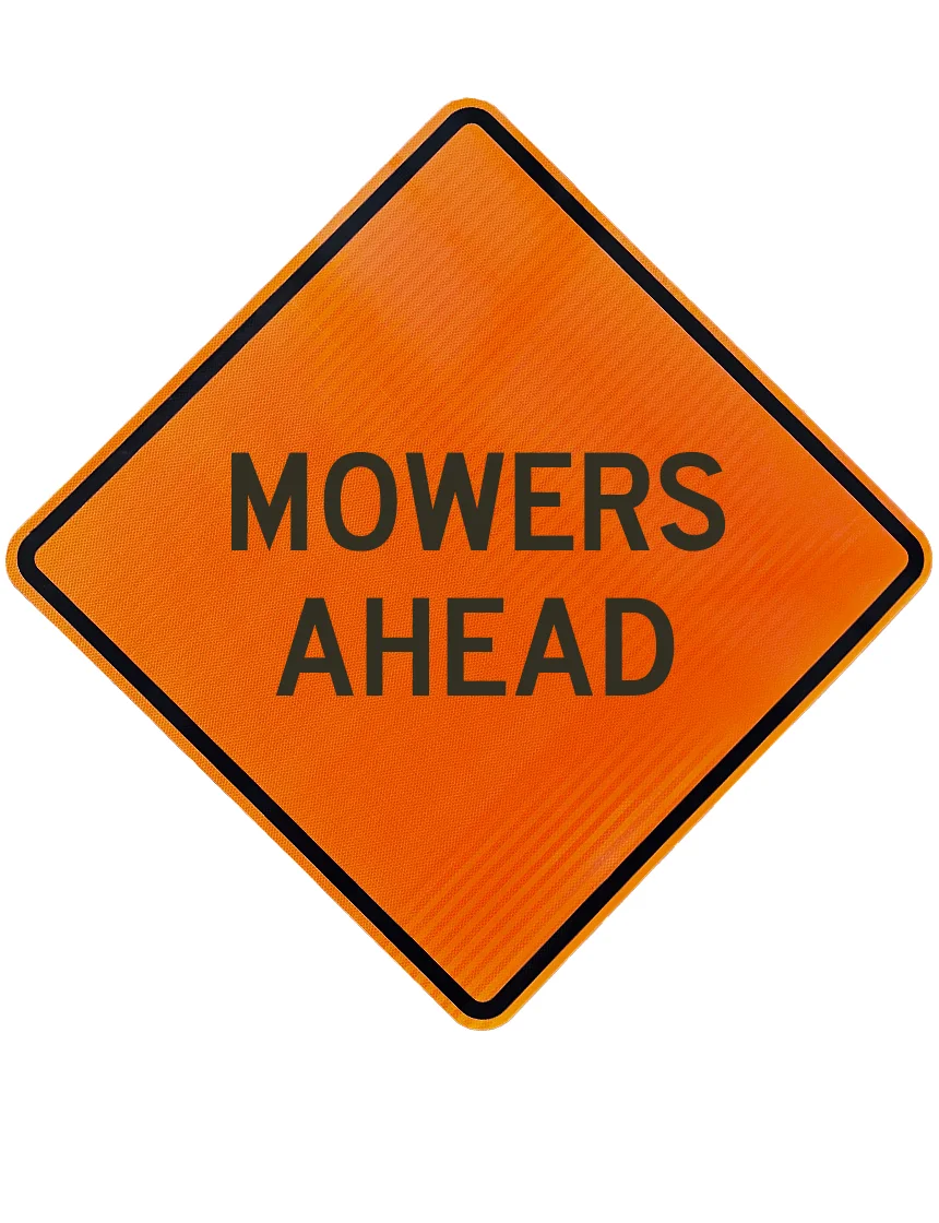 | RS-ALU-48-DG-ORG-MOWAHD | 48", Aluminum, Diamond Grade Reflective Sign, Mowers Ahead |