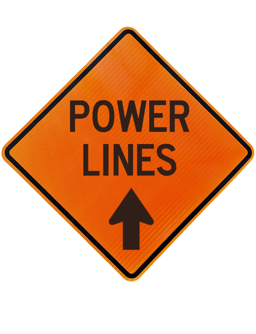 | RS-ALU-48-DG-ORG-PWRLNABV | 48", Aluminum, Diamond Grade Reflective Sign, Power Lines w/ Arrow Pointing Up |