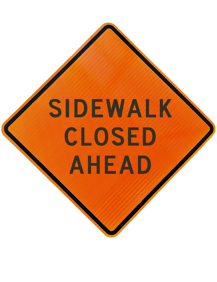 | RS-ALU-48-DG-ORG-SWCAHD | 48", Aluminum, Diamond Grade Reflective Sign, Sidewalk Closed Ahead |