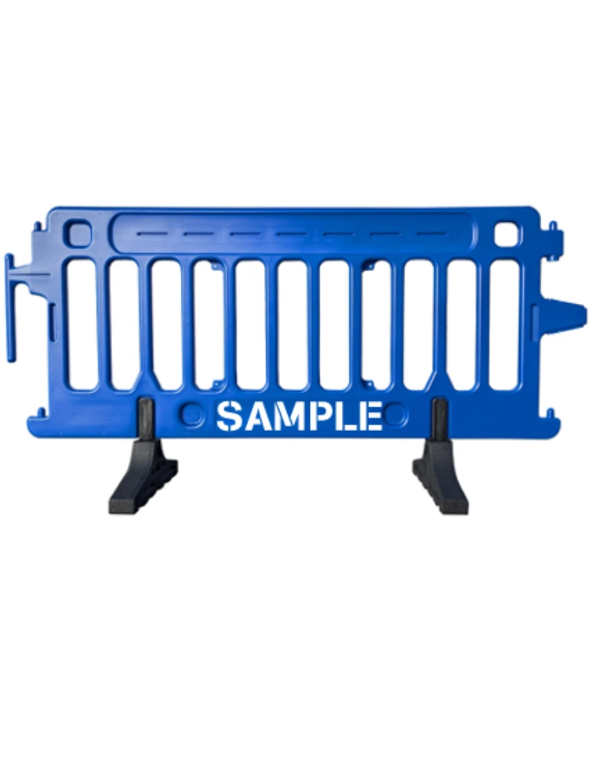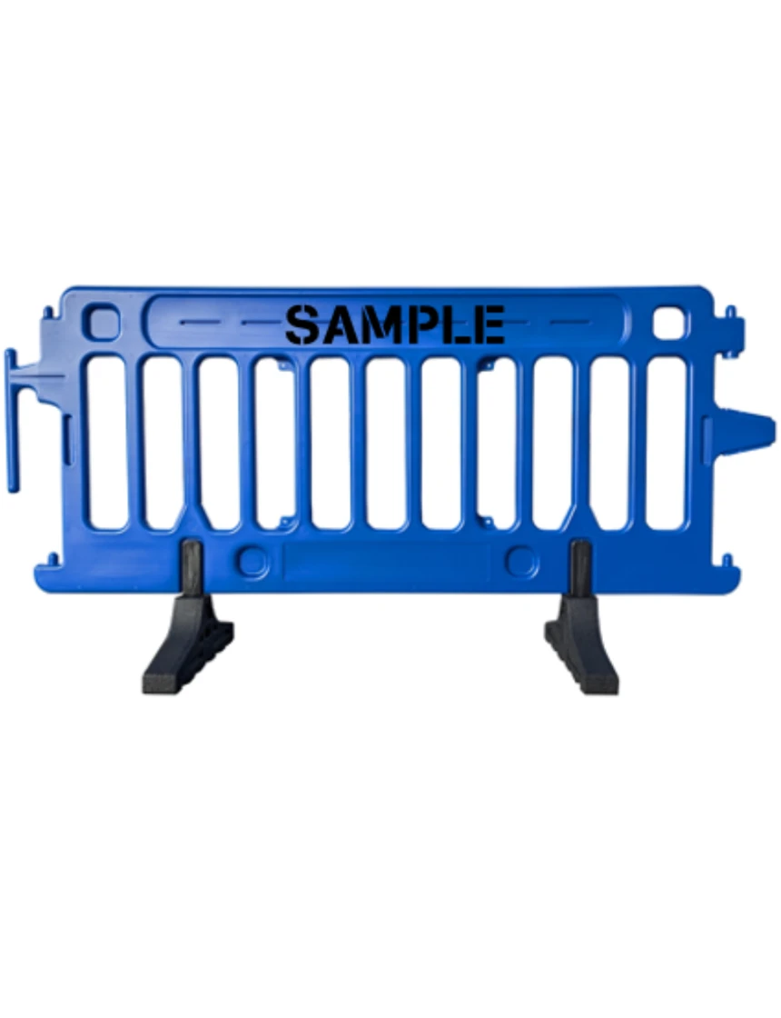6' Long X 39 1/2" Tall, Plasticade Crowdcade Crowd Control System, Blue w/ Double Sided (2X) Custom Lettering
