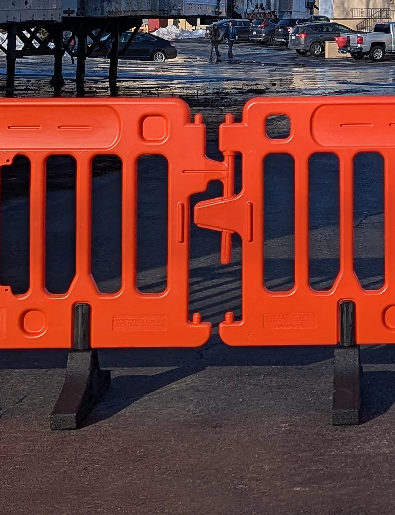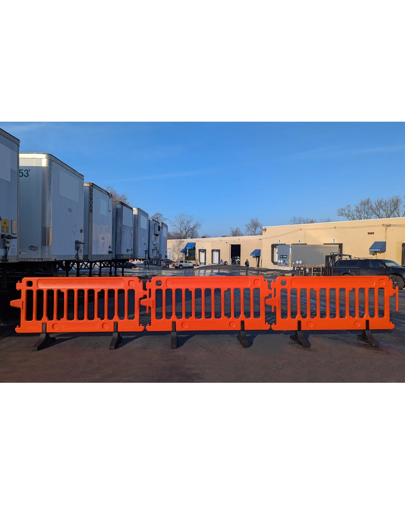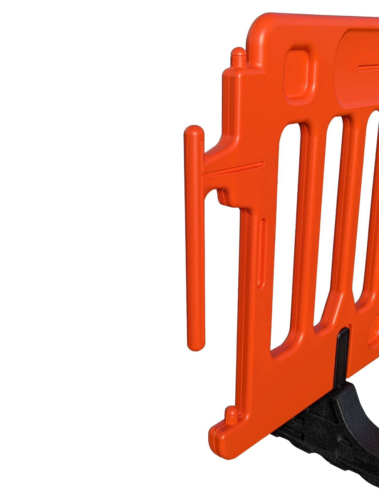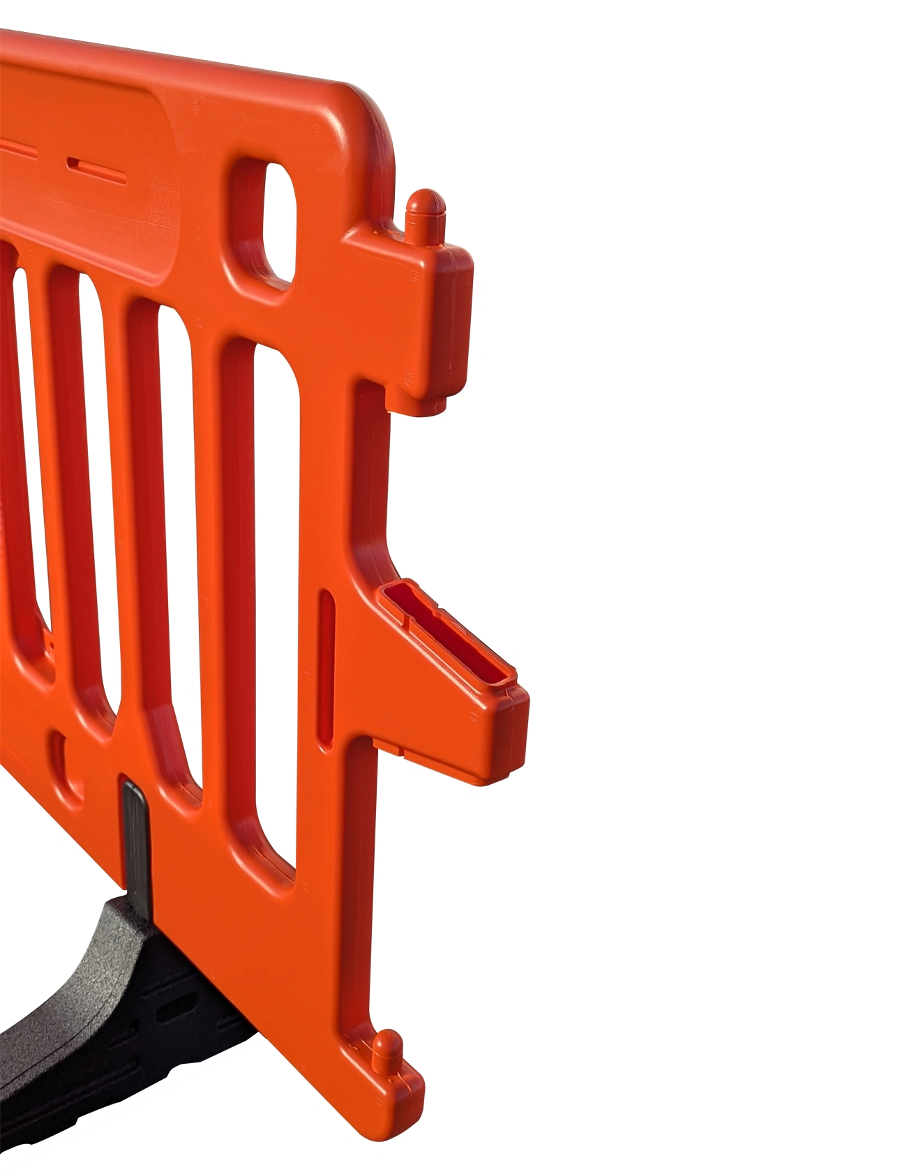 - Secure Interlocking Brackets: Tool-free linking system allows quick connection of multiple barricades. Pivoting brackets accommodate curves and uneven ground.