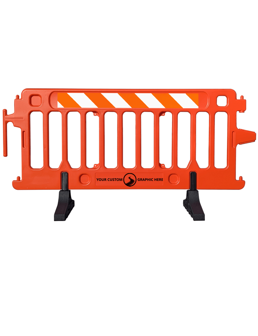 6' Long X 39 1/2" Tall, Plasticade Crowdcade Crowd Control System, Orange w/ EG Sheeting On One (1) Side w/ Single Color Custom Graphic