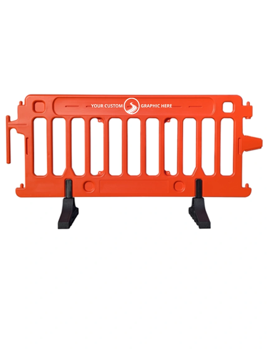 6' Long X 39 1/2" Tall, Plasticade Crowdcade Crowd Control System, Orange w/ Single Color Custom Graphic On Both Sides (2X)
