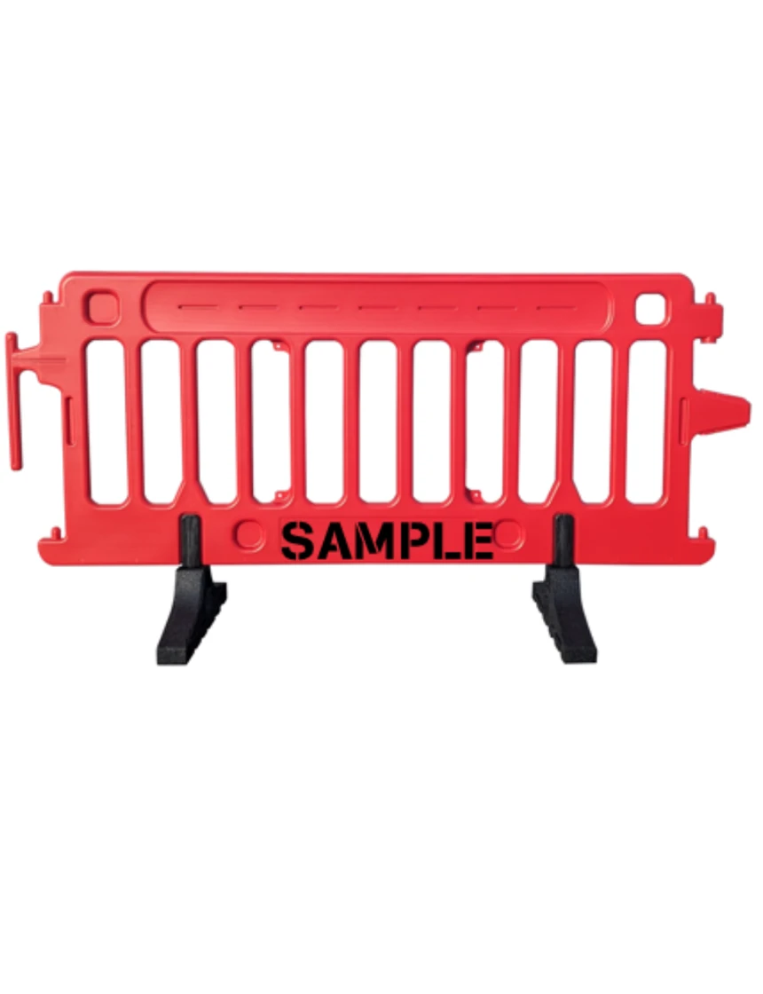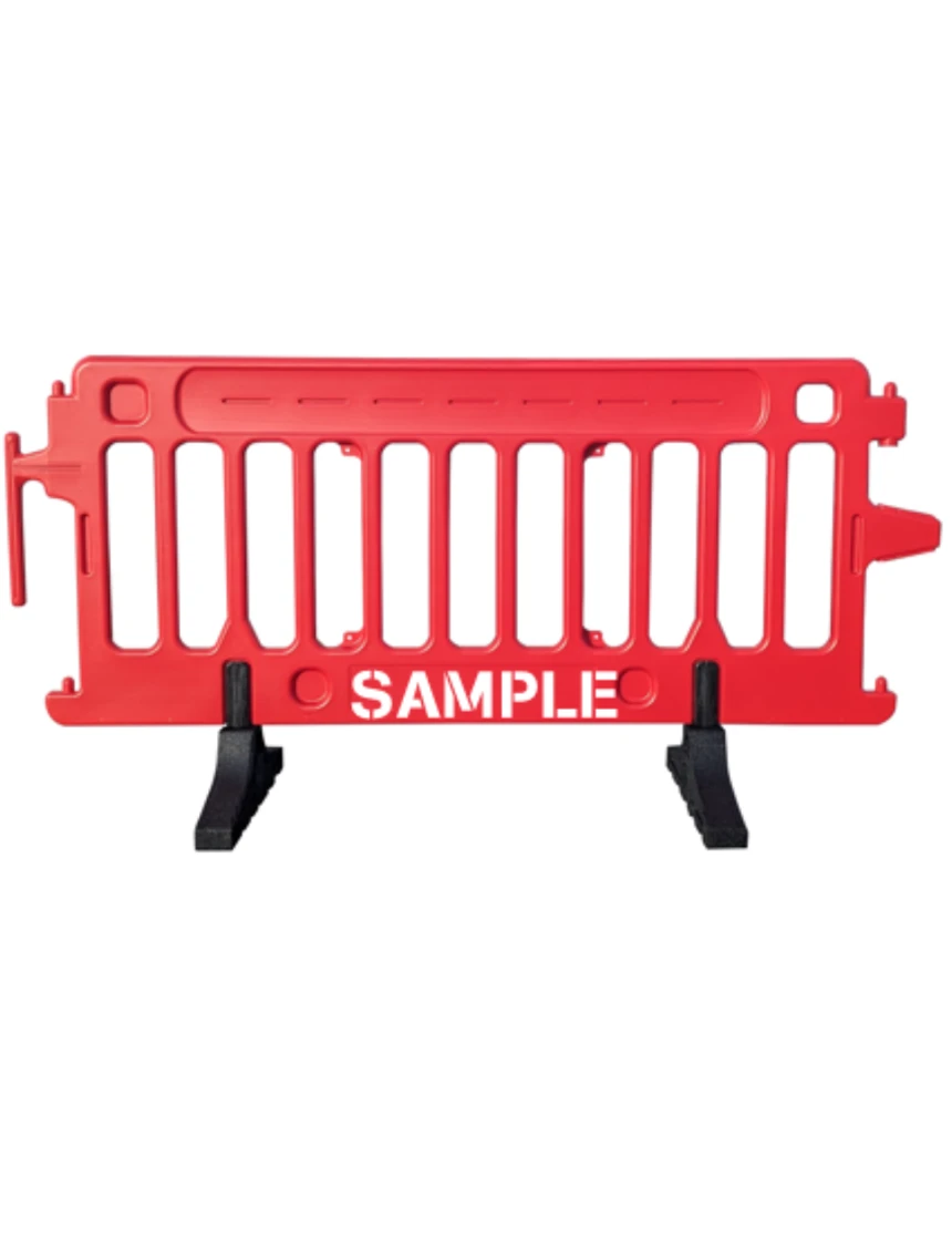 6' Long X 39 1/2" Tall, Plasticade Crowdcade Crowd Control System, Red w/ Double Sided (2X) Custom Lettering