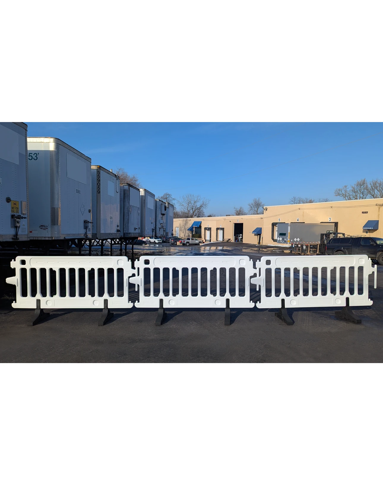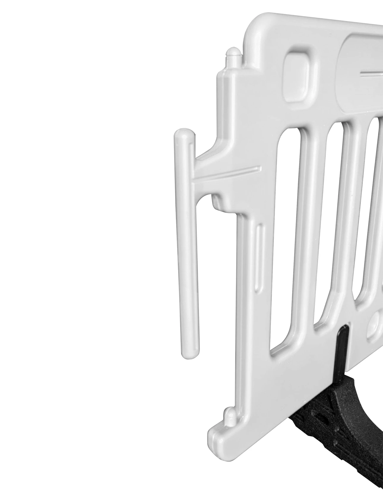 - Secure Interlocking Brackets: Tool-free linking system allows quick connection of multiple barricades. Pivoting brackets accommodate curves and uneven ground.