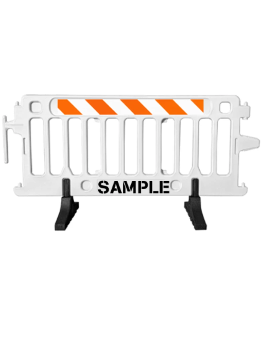 6' Long X 39 1/2" Tall, Plasticade Crowdcade Crowd Control System, White w/ EG Sheeting On One (1) Side w/ Custom Lettering On One (1) Side