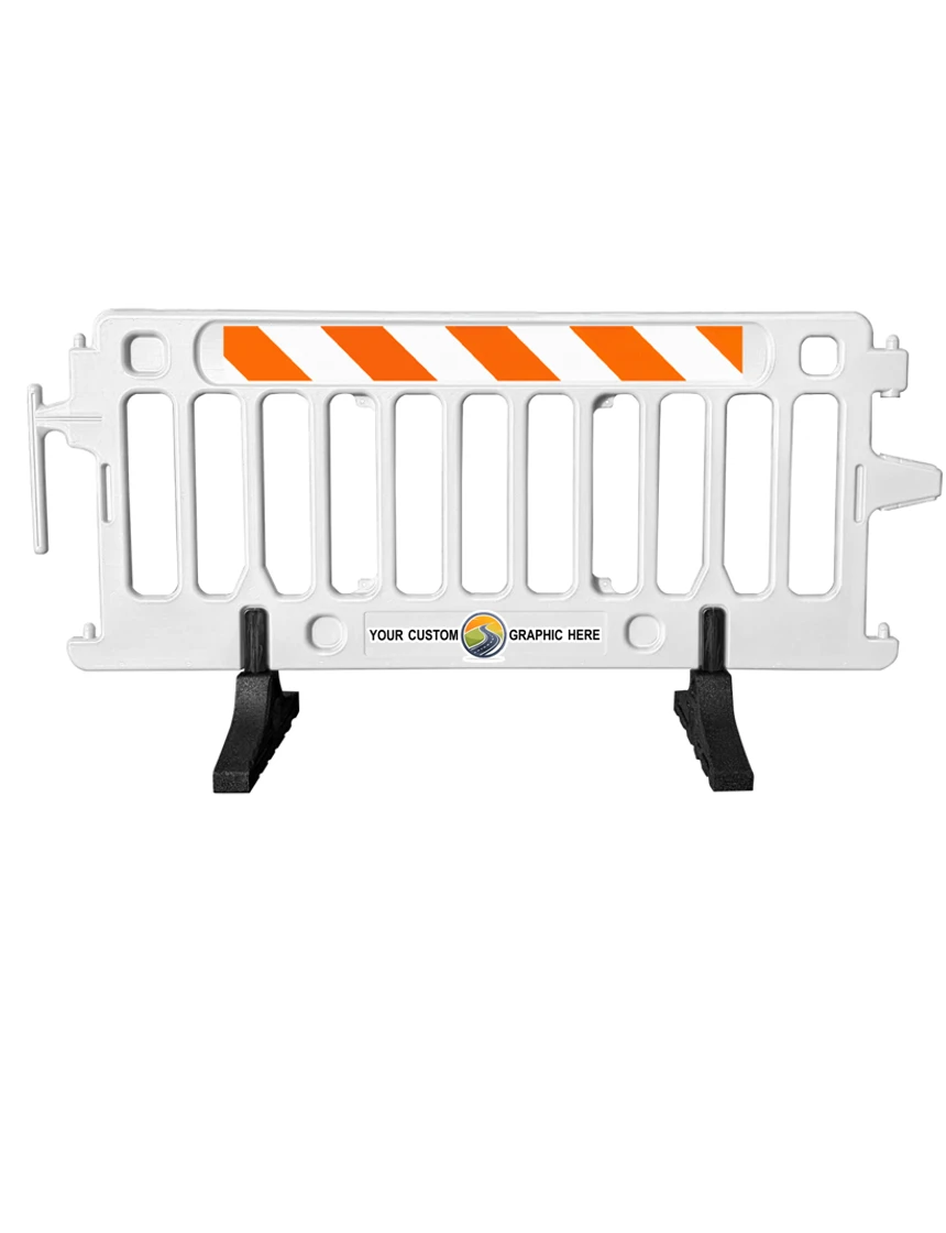 6' Long X 39 1/2" Tall, Plasticade Crowdcade Crowd Control System, White w/ EG Sheeting On One (1) Side w/ Full Color Custom Graphic