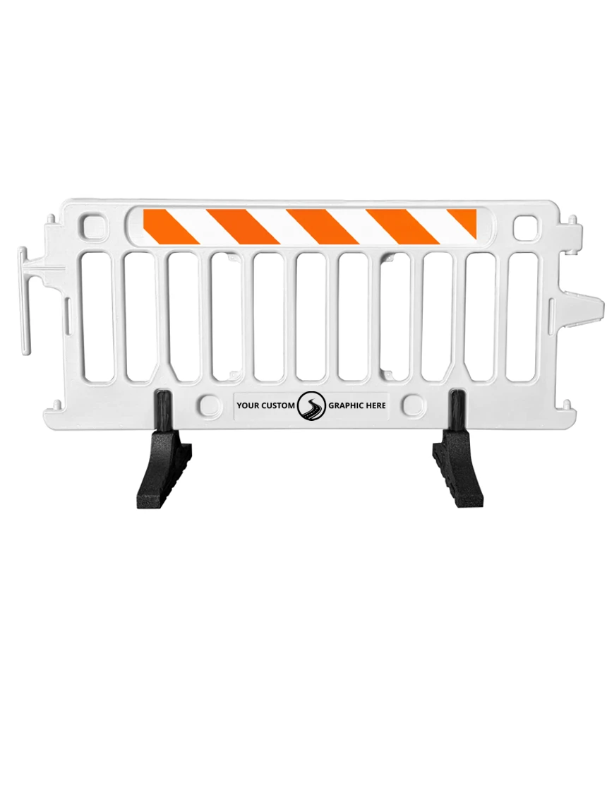 6' Long X 39 1/2" Tall, Plasticade Crowdcade Crowd Control System, White w/ EG Sheeting On One (1) Side w/ Single Color Custom Graphic
