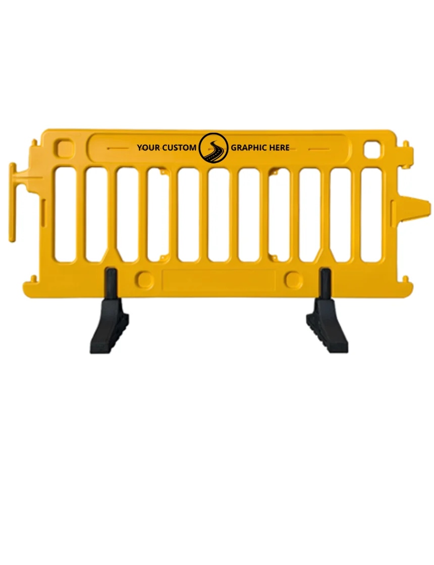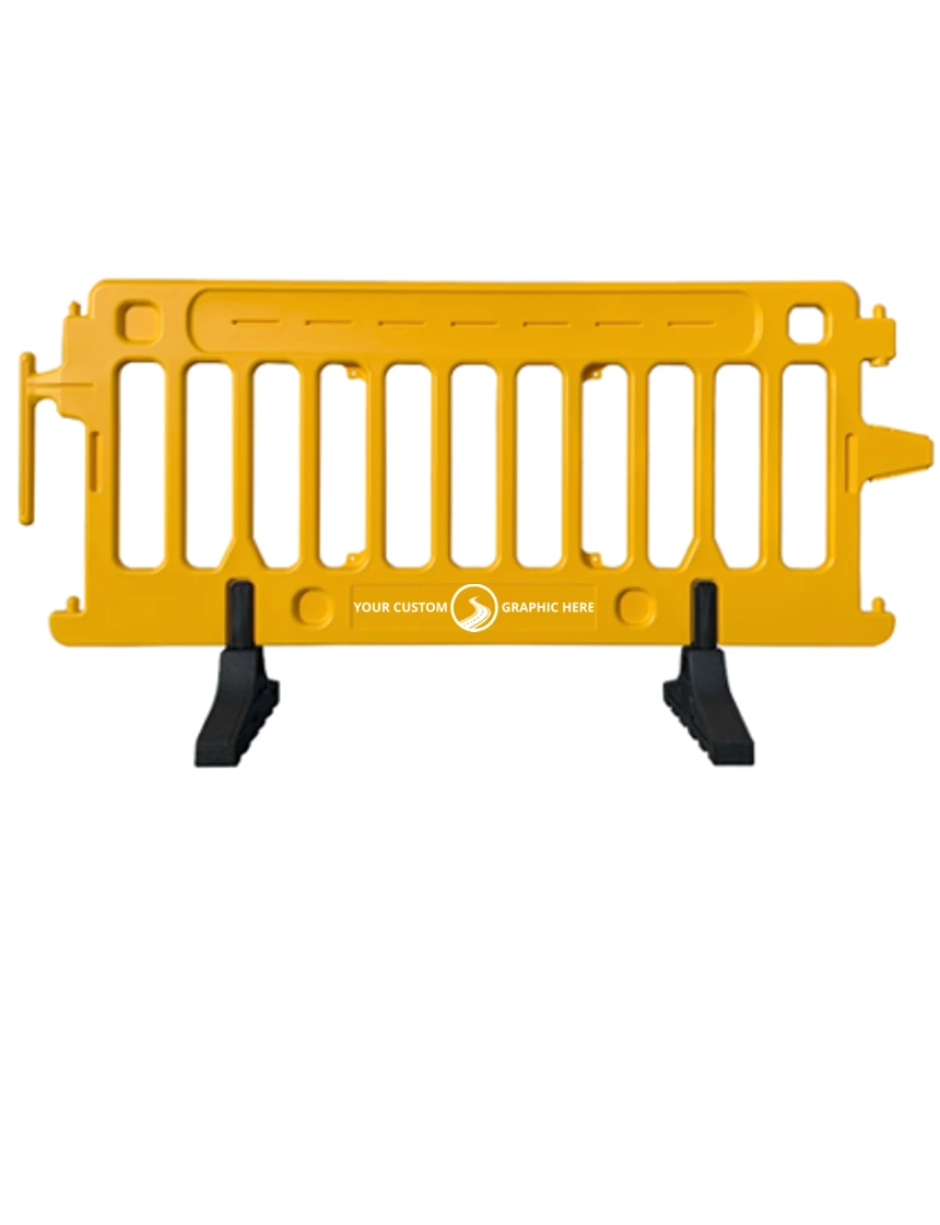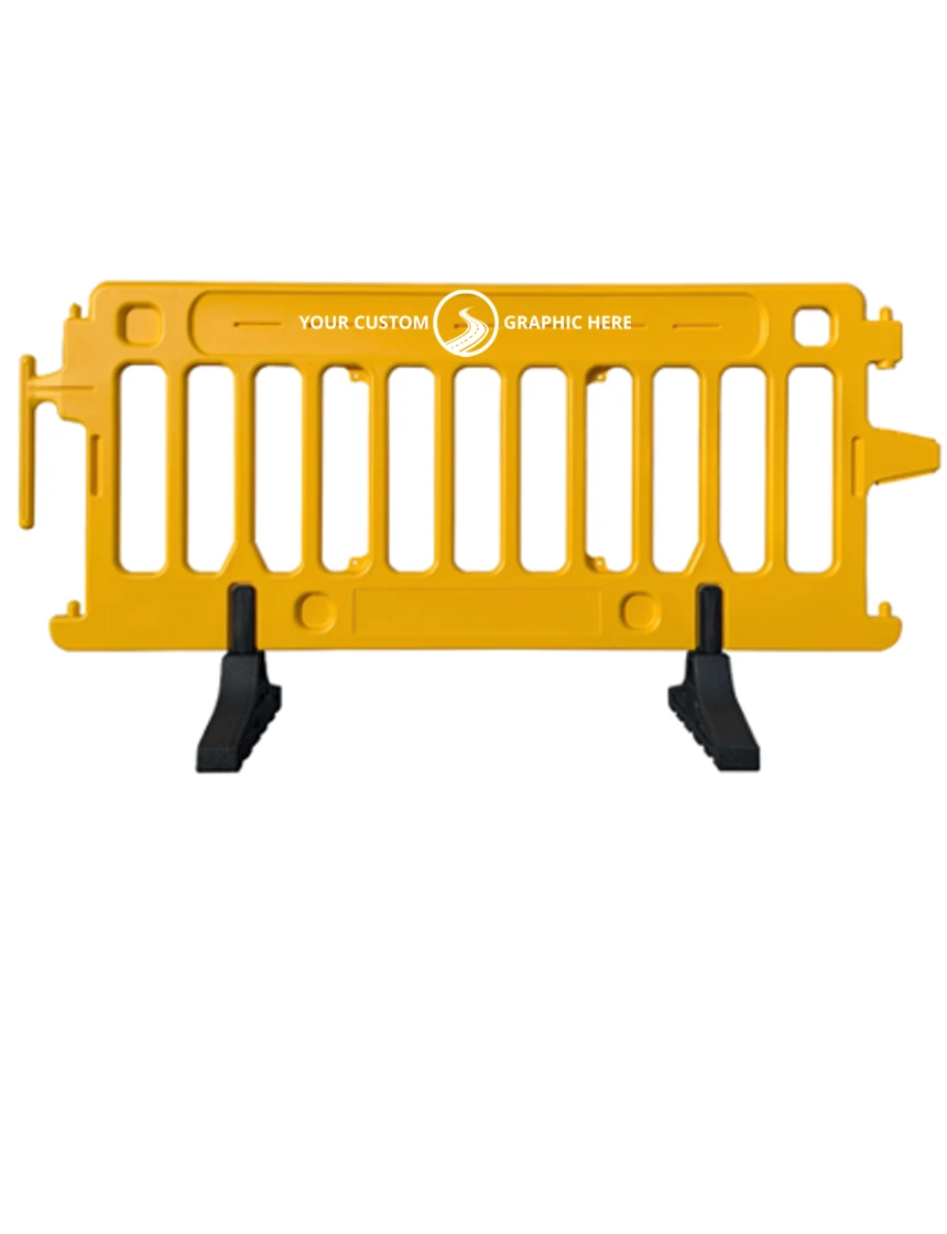 6' Long X 39 1/2" Tall, Plasticade Crowdcade Crowd Control System, Yellow w/ Single Color Custom Graphic