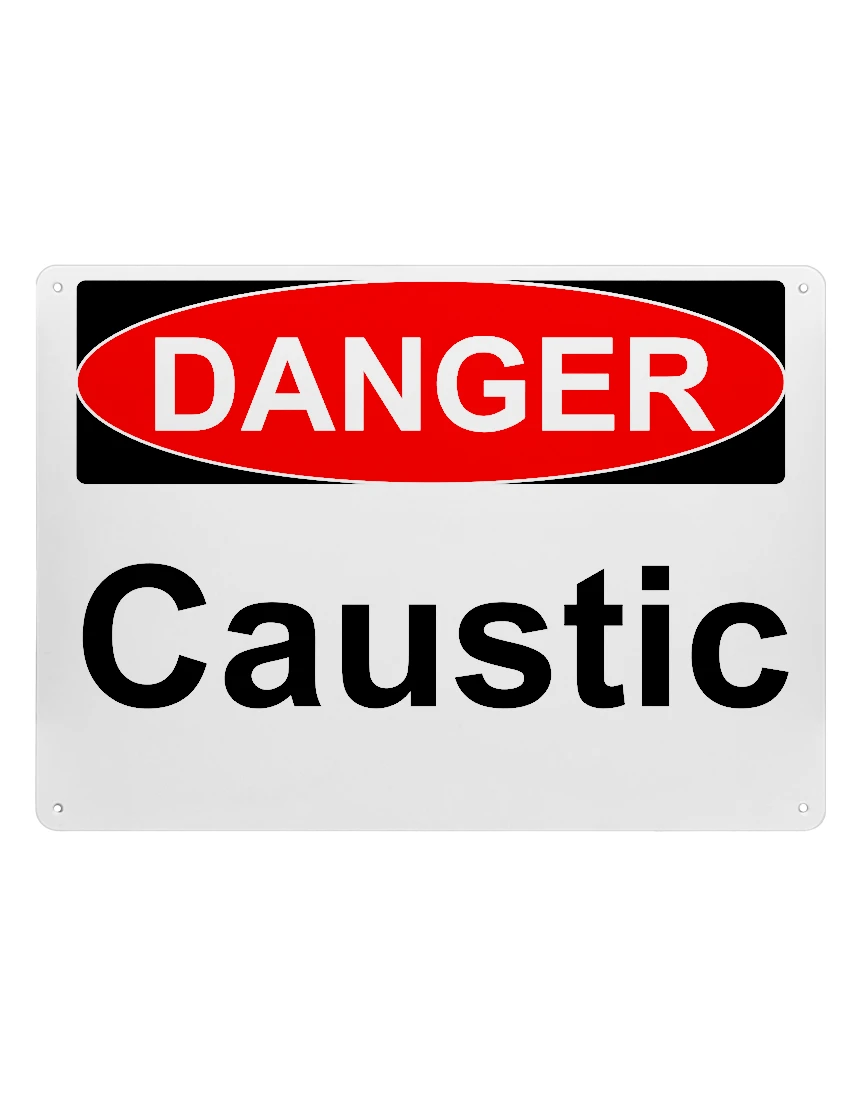 14" tall x 10" wide plastic sign with mounting holes, Danger Caustic