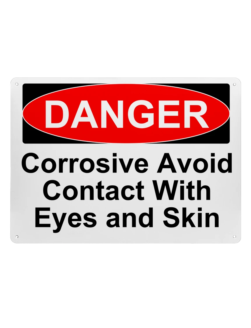 14" tall x 10" wide plastic sign with mounting holes, Danger Corrosive Avoid Contact With Eyes And Skin