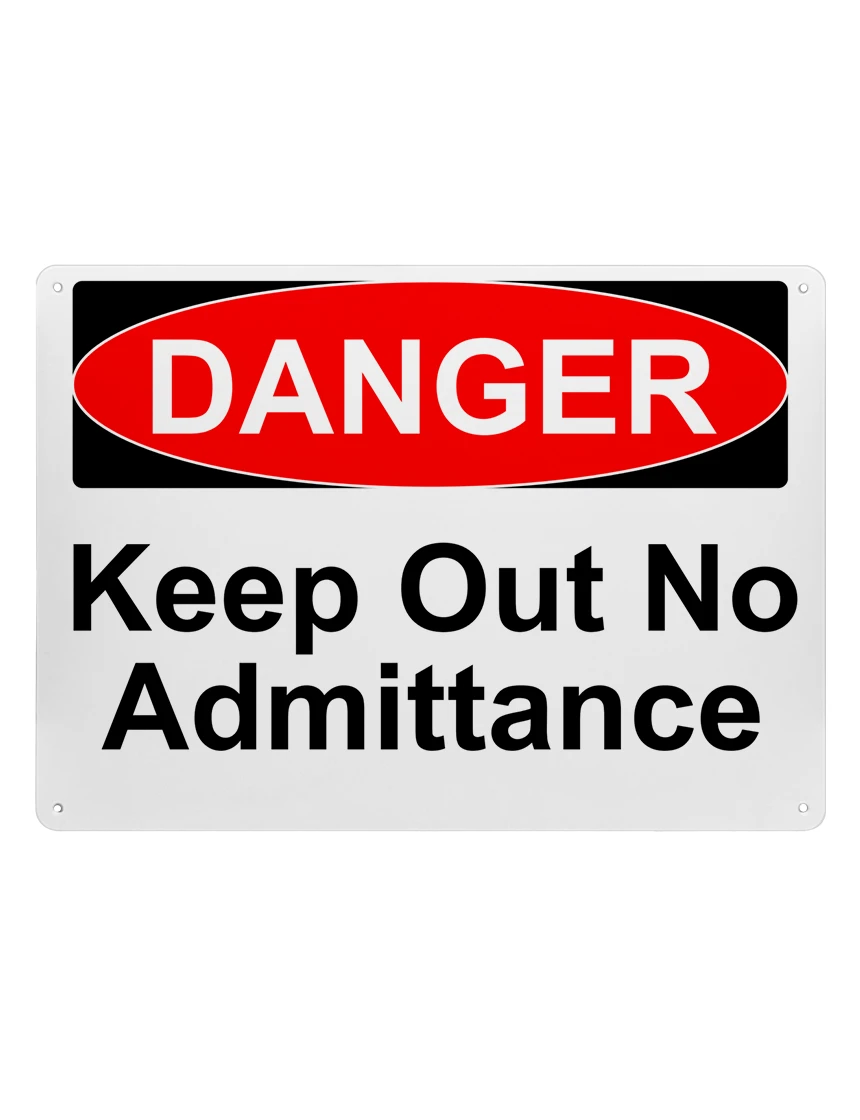 14" tall x 10" wide plastic sign with mounting holes, Danger Keep Out No Admittance