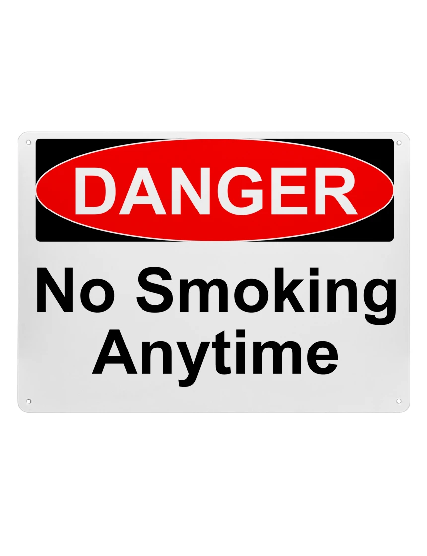 14" tall x 10" wide plastic sign with mounting holes, Danger No Smoking Anytime