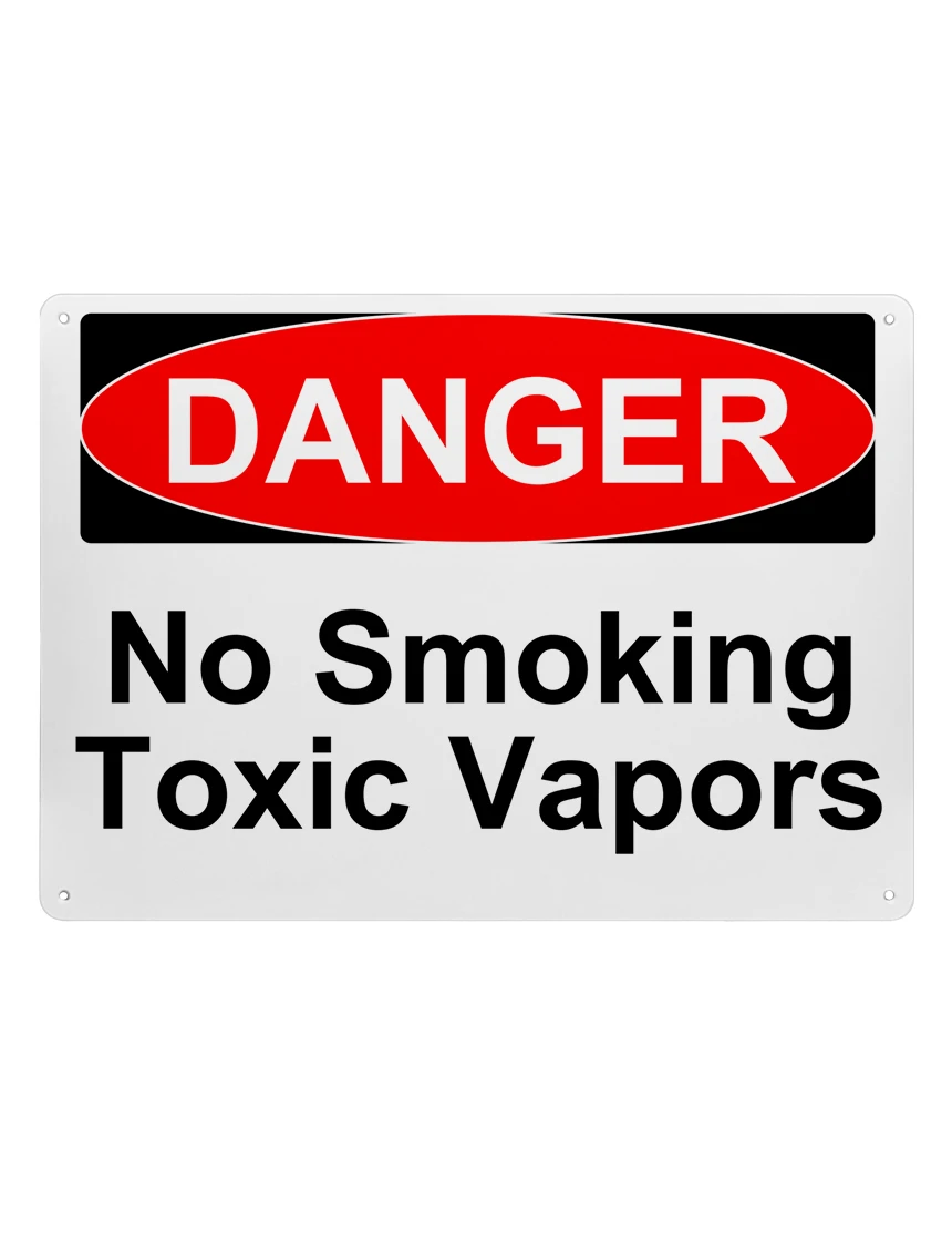 14" tall x 10" wide plastic sign with mounting holes, Danger No Smoking Toxic Vapors