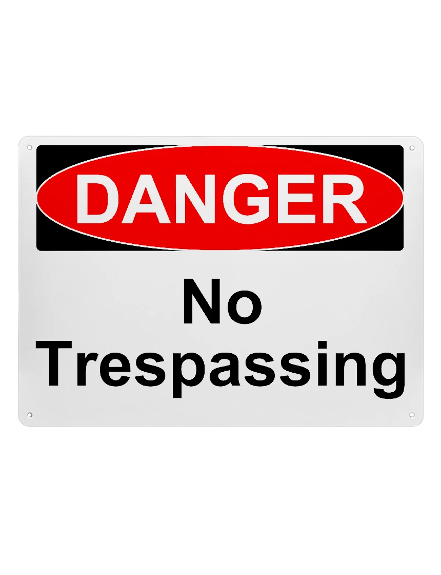 14" tall x 10" wide plastic sign with mounting holes, Danger No Trespassing